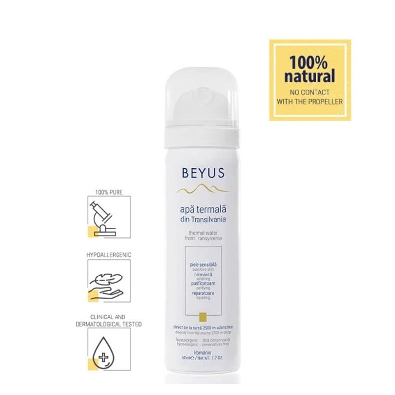 Beyus Transylvania Thermal Water|No contact with propellant no contact with the outside environment|Hydrating Soothing Calming|Senzitve Skin Skin Irritations Blemishes