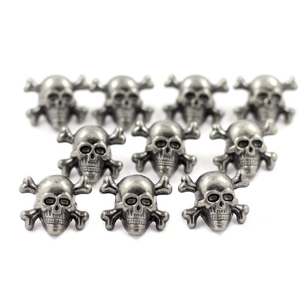 Bezelry 12 Pieces Skull with Cross Bones Gray Silver Color Metal Shank Buttons 14mm (9/16 inch)