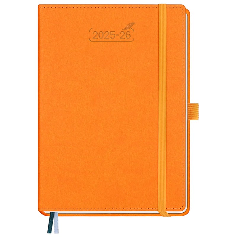 BEZEND Calendar 2025 2026 Weekly Planner A5, 18-Month Book Calendar July 25-Dec 26, PU Leather Hardcover 1 Week 2 Pages with Pen Holder - Orange