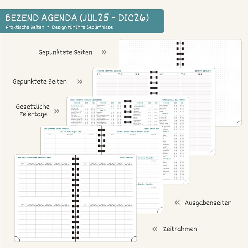 - Useful pages: annual calendar 26-27 | holidays and holidays contact pages | delle spese | dotted notes | personal information | schedule