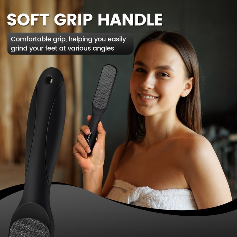 - Perfect for Both Beginners and Experts C Crafted with both novices and seasoned foot care enthusiasts in mind, our premium double-sided foot file features two durable nano glass surfaces that effortlessly remove calluses and rough skin, leaving your feet soft, smooth, and beautifully cared for. An ideal solution for cracked heels and at-home pedicures.