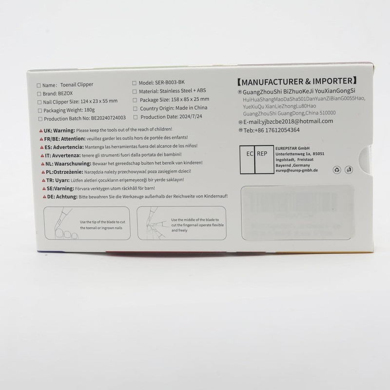 Safety & Storage Features – Includes a safety tip cover and a customized storage tin box to keep the clipper clean, secure, and easy to store or transport. A spare spring is also included to extend the clipper's lifespan.
