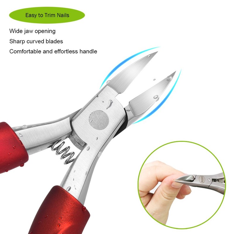 - FOR PROBLEM NAILS - Our toenail clipper is designed for thick and brittle toenails caused by paronychia, nail fungus, damage or aging. Its super sharp blade and wide jaw opens up to 0.4 inch allowing you trim even the thickest nails. What’s more, the blade has a sharp and pointed end making it ideal for easy trimming ingrown nails and sensitive areas.