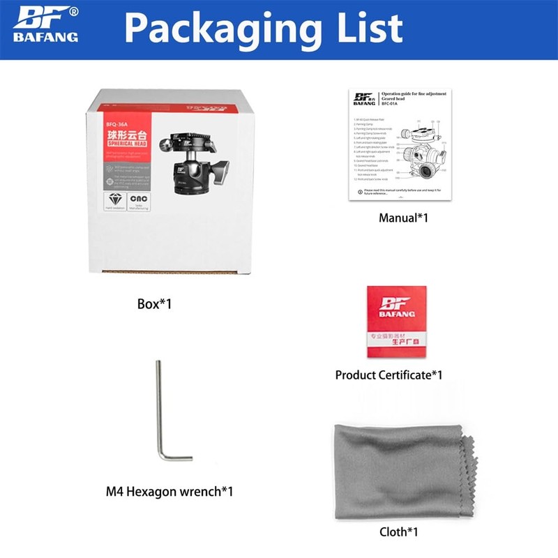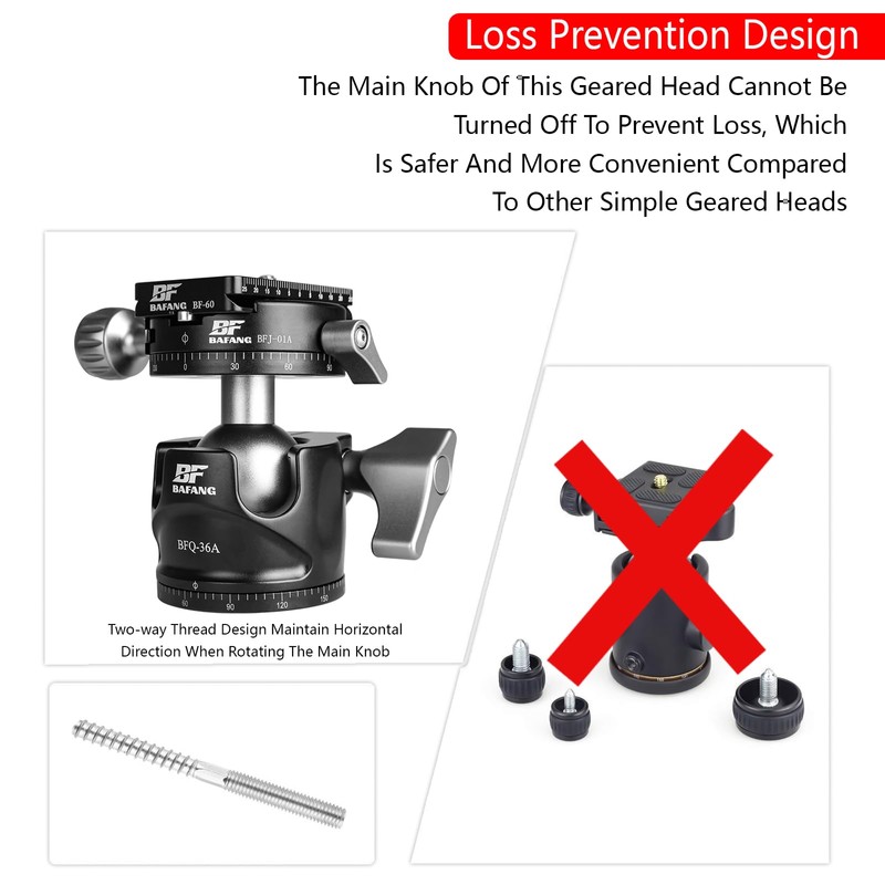 - High quality: Made of high-quality aviation aluminium, the BF BAFANG tripod head with gear provides a stable foundation for your photo equipment.