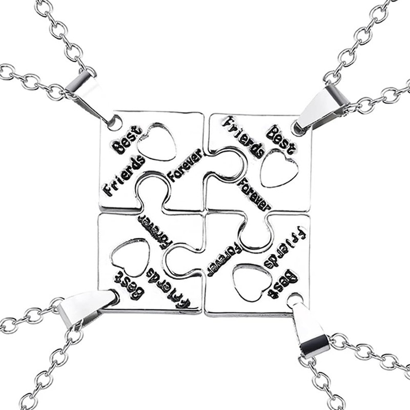 Bff Necklace Gifts for 4 Best friends Matching Puzzle Friendship Necklace for 4, Christmas Birthday Long Distance Gifts for Best Friend Forever