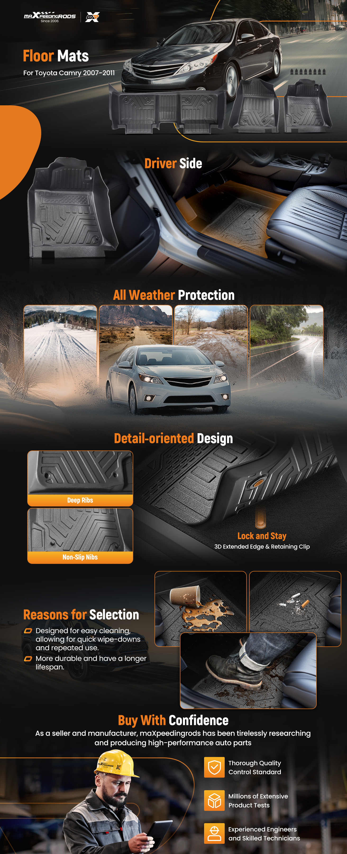 Car Floor Mats Custom Fit Waterproof For Toyota Camry 2007 2008 - 2011 Rubber