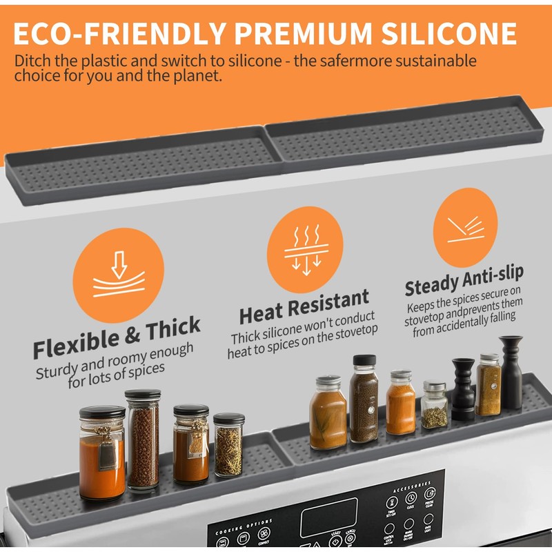 - Prevent Spice Drop: The thick magnetic stove top rack with lip around all sides prevents spices from falling, and there is 2 partition to divide the area, which helps to store spices in an orderly manner and category in the kitchen. The bottom of the magnetic stove rack has a non-slip texture design. You don't have to worry about the spice dropping during the process of cooking. Today and take the first step towards a more organized and efficient cooking experience!