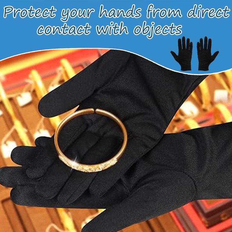 - [Multiple uses]:Black cotton gloves can be used for archive cleaning,artwork processing,jewelry,silverware and coin inspection,or as service gloves or moisturizing gloves, dry hands