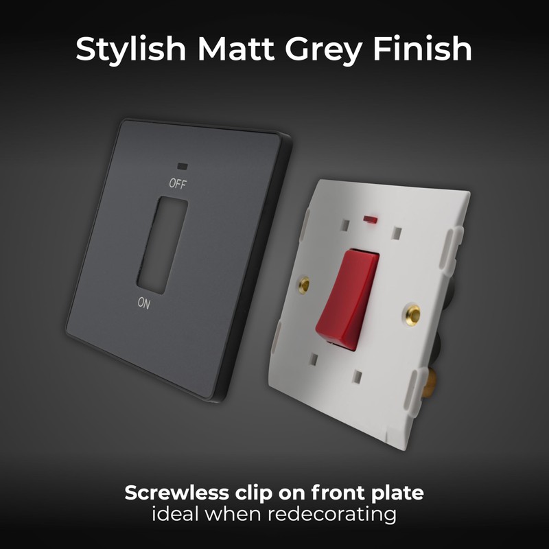 • SLIM AND CONTEMPORARY COOKER SWITCH WITH LED POWER INDICATOR: From BG Electrical, the Evolve matt grey 45A cooker switch is ideal for modern interiors. With its screwless removeable front plate that clips on/off, it's ideal for redecoration