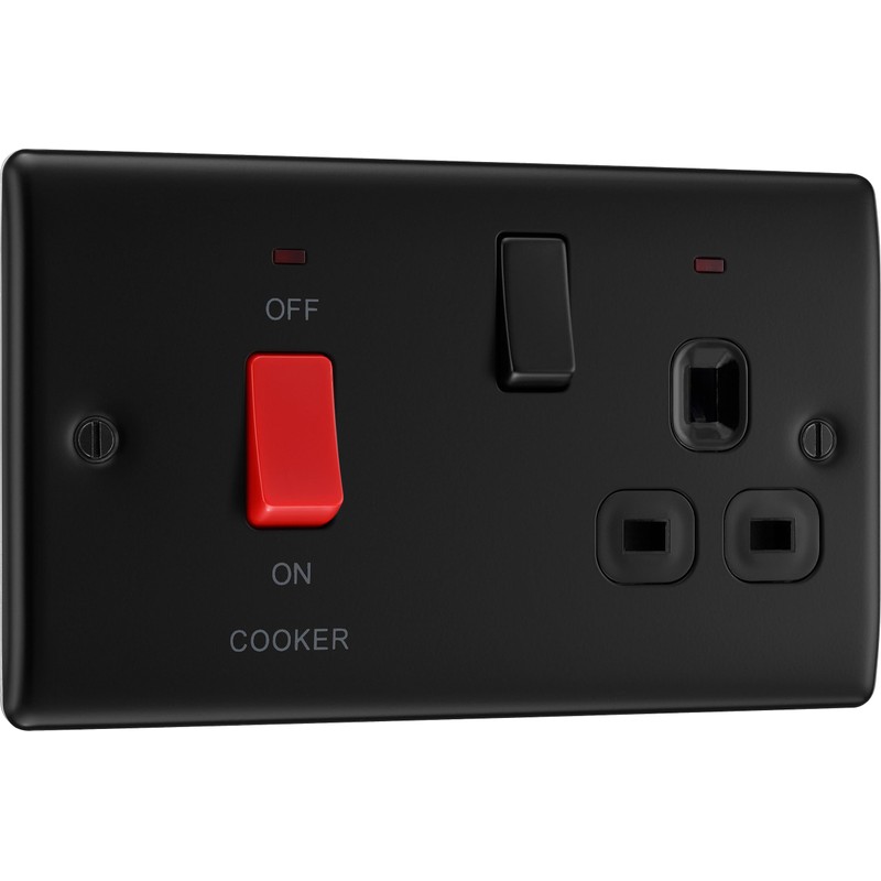 - SLEEK AND SLIM MATT BLACK COOKER CONTROL UNIT WITH LED POWER INDICATORS: From BG Electrical, this 45A cooker unit switch and 13A socket has a sleek round edge, red rocker switch and colour matching screws. Ideal for domestic or commercial use