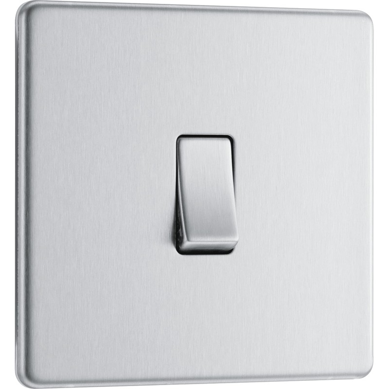 BG Electrical fbs12 Screwless Flat Plate Single Light Switch, Brushed Steel, 2-Way, 16AX