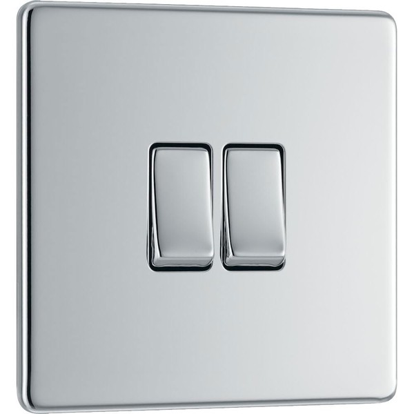BG Electrical FPC42 Screwless Flat Plate Double Light Switch, Polished Chrome, 2-Way, 10AX