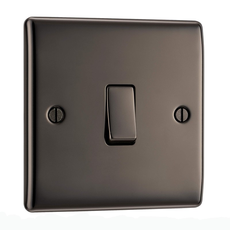 - SLEEK AND SLIM BLACK NICKEL SINGLE LIGHT SWITCH: From BG Electrical, has softly rounded corners, a gently curved rocker and colour matching fixing screws – combining quality with modern elegance