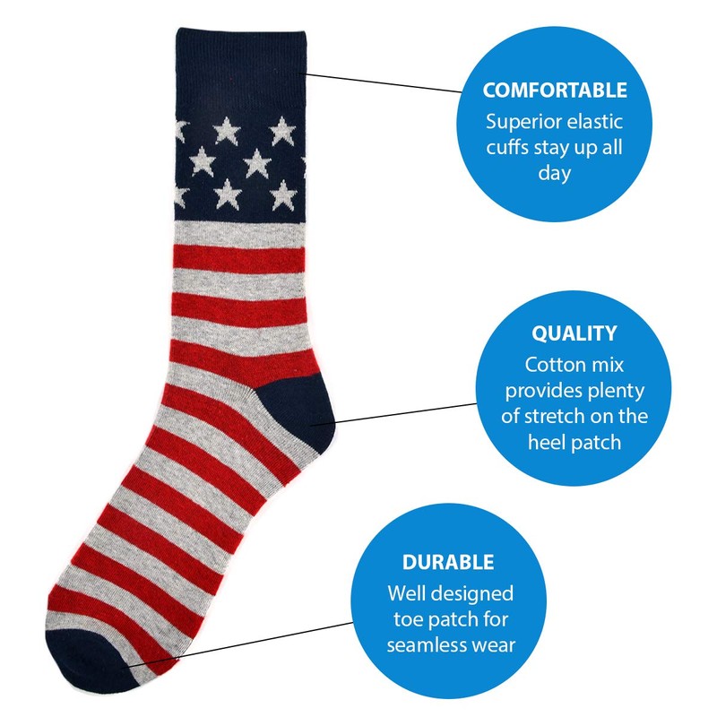 BG Premium Dress Socks for Men. Classic and Formal Apparel Patterned Socks, 3 Pair Set with a Gift Box - Red, White, and Blue