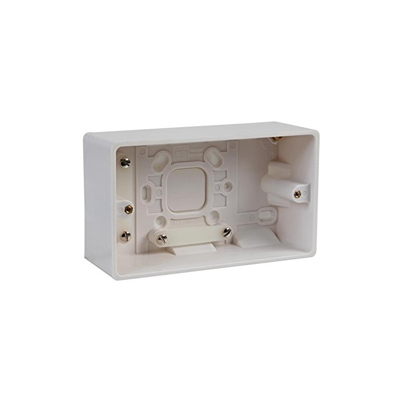 SURFACE BOX 2 GANG 50MM, Electrical Box Material: Plastic, Electrical Box Mounting: Surface, For Use With: 1x 2 Gang Plates, Internal Depth: 50mm, No. of Gangs: 2, Product Range: BG Moulded Back Box, Colour: White, Internal Depth - Metric: 50mm