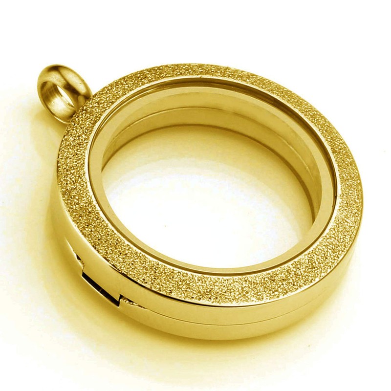 BG247 Stainless Steel 30mm Glass Floating Memory Living Locket Circle Necklace (Gold Circle, Glitter)
