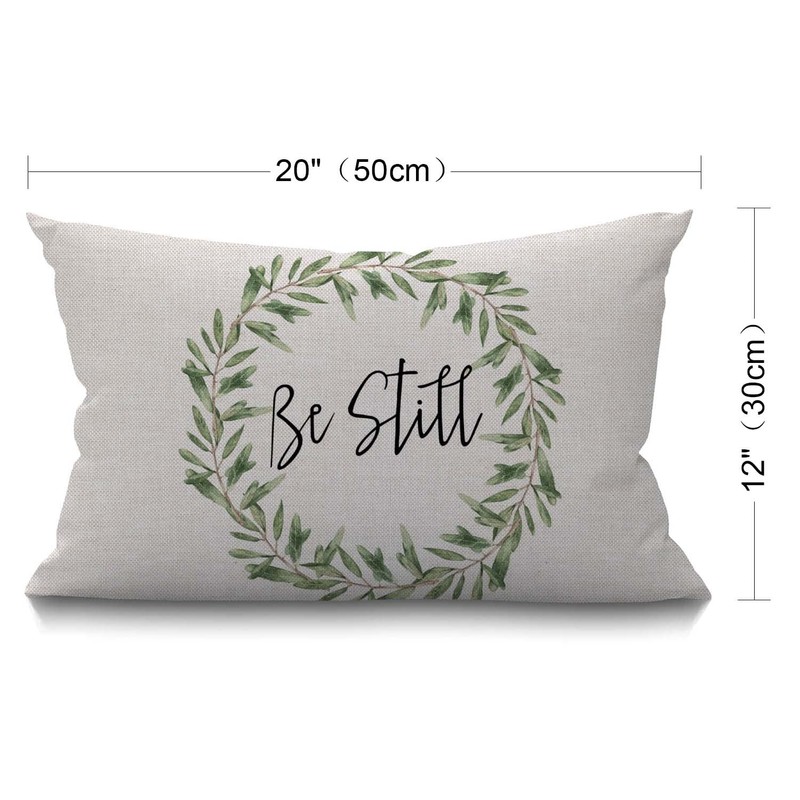 BGBDEIA Rustic Be Still Cushion Cover Farmhouse Green Olive Wreath leaves Decorations Pillow Cover Case for Sofa Couch Cotton Linen 30 x 50 cm 12x20 Inches