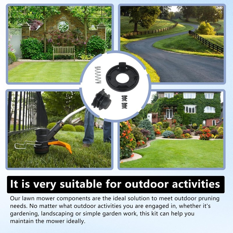 - Package Includes: 1x Trimmer Head Spool, 1x Trimmer Head Cover, 1x Trimmer Head Spring, 2x Line Feed Eyelets
