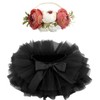 BGFKS Baby Girls Soft Fluffy Tutu Skirt with Diaper Cover,Toddler Girl Tutu Skirt Sets with Flower Headband.(Black,0-3 Months)