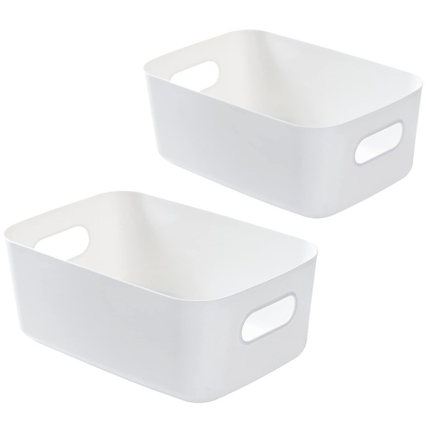 Bgfuni 2pcs Plastic Storage Baskets, Storage Boxes, Plastic Organizer Baskets with Handle, Plastic Studio Storage Baskets,Small Plastic Baskets for Kitchen, Home,Office, Bathroom,20x14 x7.5cm(White)