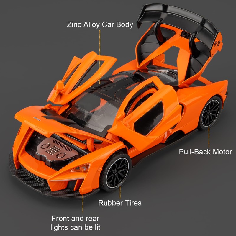 BGHSCA 1/32 McLaren Senna Car Model, Collecting McLaren Senna Super Sport Diecast Car Toy with Sound and Light, Zinc Alloy Pull Back Orange Toy Vehicle for Adults Boys Girls