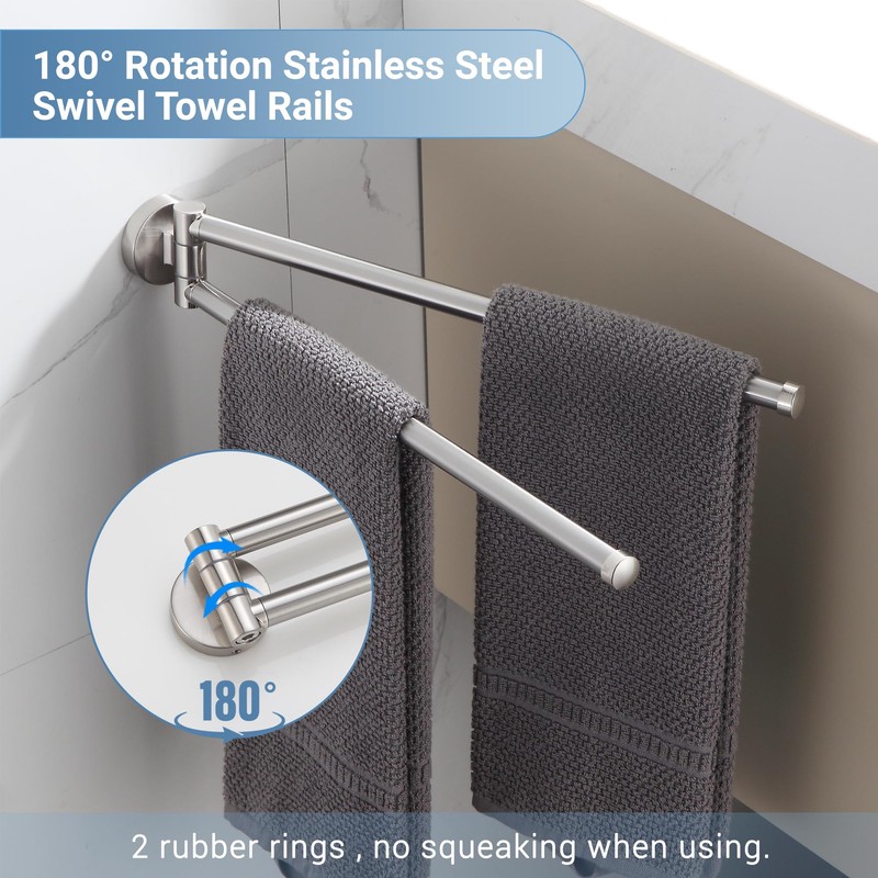 BGL Swivel Towel Bar for Bathroom Brushed Nickel,Swing Out Double Towel Bar 2-Arm Kitchen Wall Mounted Towel Hanger Holder for Bathroom Organizer