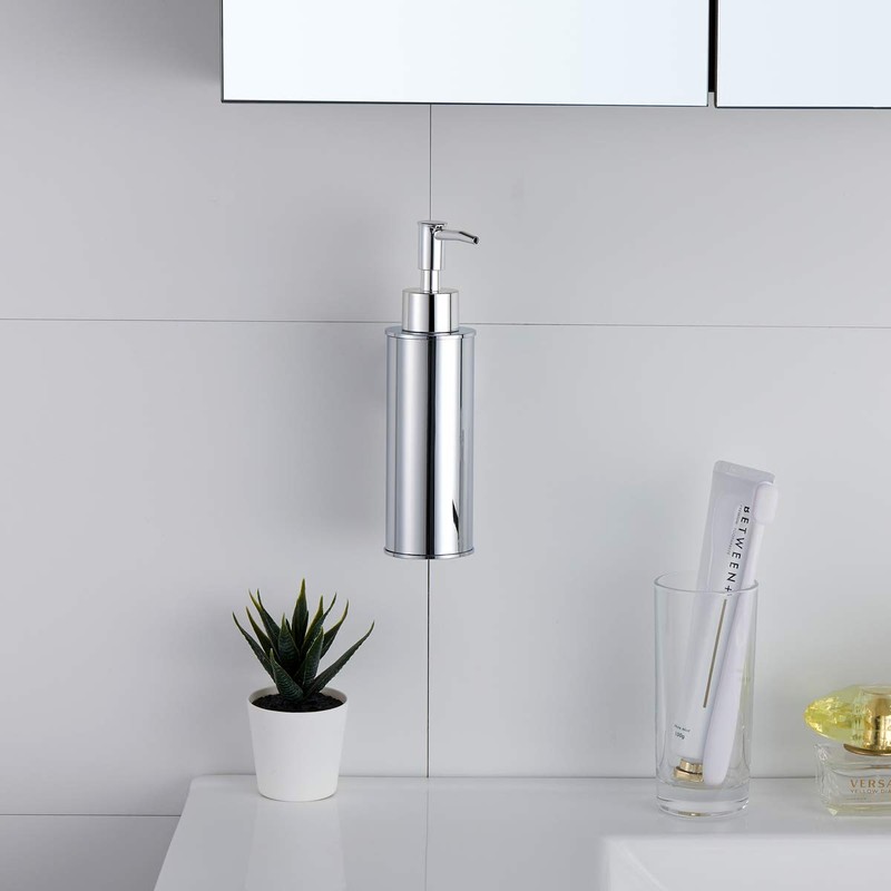 • Space-Saving Wall-Mounted Installation: Our chrome soap dispenser features a concealed screw wall-mounted design, saving valuable space and seamlessly blending with any bathroom decor. Its modern and stylish appearance adds a touch of elegance to your room, making it an essential accessory for your bathroom and kitchen.