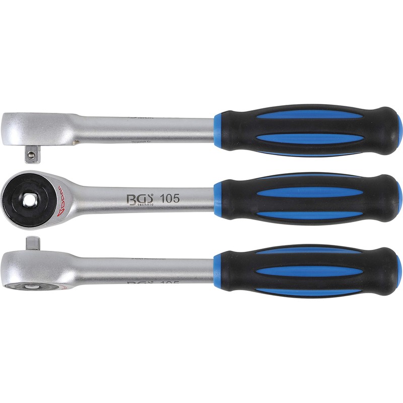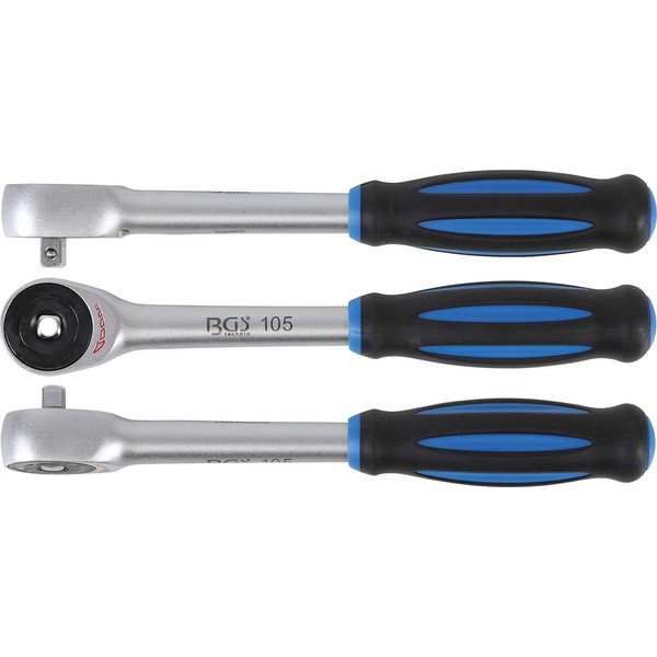 BGS 105 Reversible Ratchet with Spinner Handle, Silver/Black/Blue, 1/4-Inch