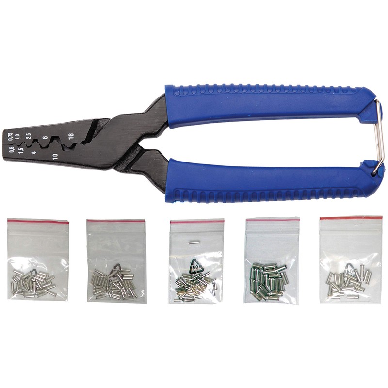 BGS 1430 | Crimping Tool for Cable End Sleeves | incl. 150 Cable Terminals | 175 mm