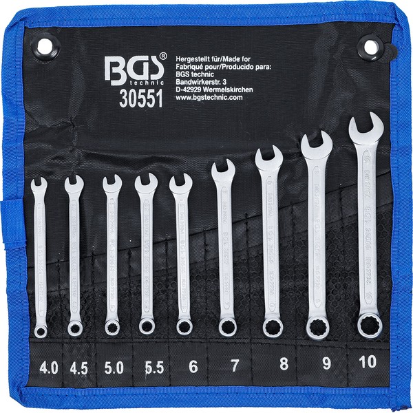 BGS 30551 Open-Ended Ring Spanner Set 9 Pieces SW 4-10 mm DIN 3113-A Includes Tetron Roll Bag Combination Spanner