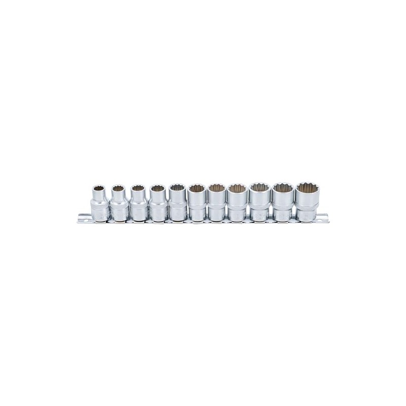 - Socket set, 12.5 mm (1/2") drive, 12-point: sizes: 10 - 11 - 12 - 13 - 14 - 15 - 16 - 17 - 18 - 19 - 21 mm