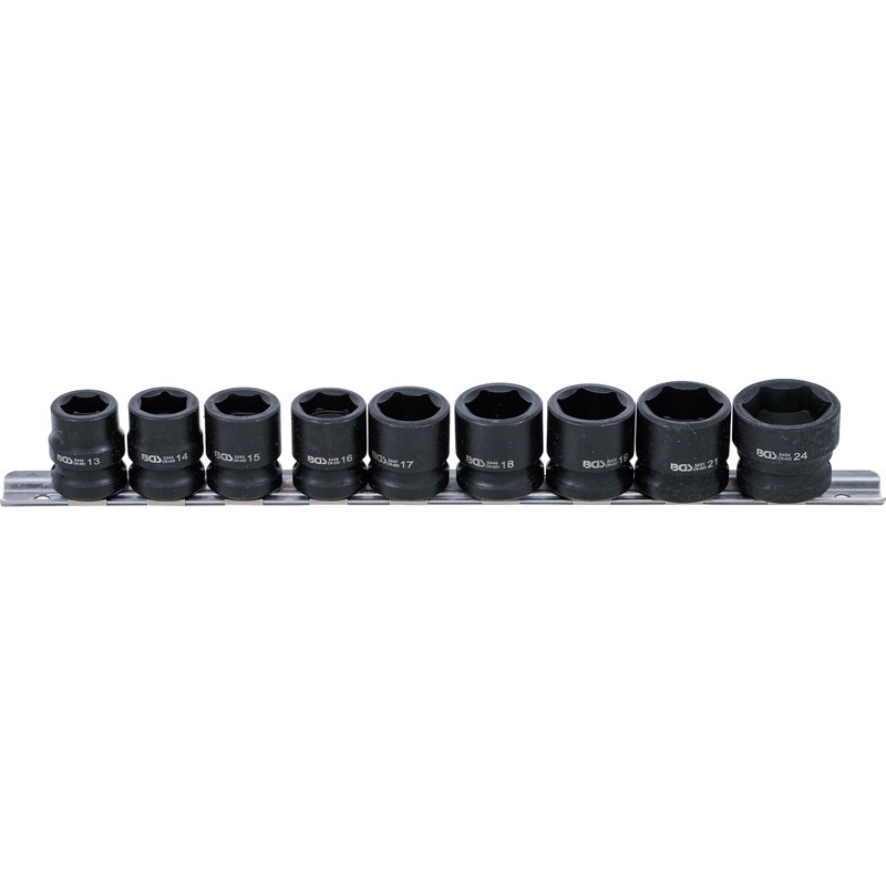BGS 9551 Impact Socket Set Hexagonal Extra Flat 12.5 mm (1/2 Inch) SW 13-24 mm 9 Pieces