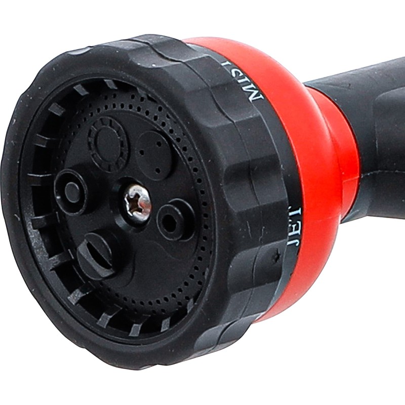- Simple plug-in system allows quick and comfortable connection and disconnection of hoses. Ergonomic pistol grip with ribbed structure for safe handling. Due to pre-shaped recessed grips, each handle sits even with wet hands. Allows you to adjust the water jet to 6 different spray patterns and individual needs for the respective area of application