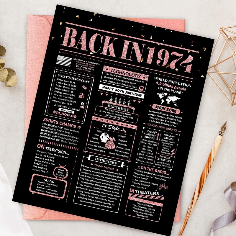 - 【Back in Birthday Card】 Back in birthday card contains popular TV shows, famous people born, hit songs, filled with news and events from the past, which can help you recall the past with family or friends, prepare a commemoration significance gift for your recipient.