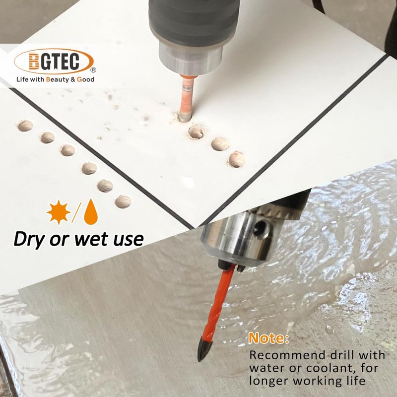 BGTEC Diamond Drill Bits Set Core Drill bit with Quick Change Hex Shank, 5pcs 3/8"*4 Tile Drill Bit+3/8" Carbide Drill Bit for Ceramic Tile Porcelain Tile Marble Granite