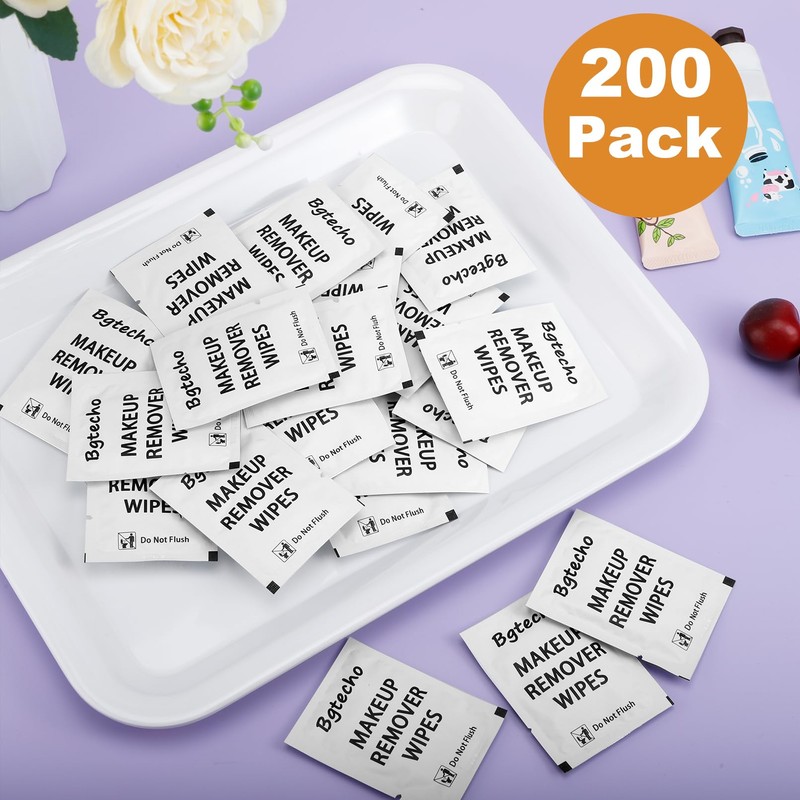Bgtecho 200 Pack Makeup Remover Wipe Bulk, Individually Wrapped Makeup Remover Wipes, Alcohol Free Facial Cleansing Wipes, Makeup Wipe with Vitamin E, Gentle Face Wipes for Travel Hotel(White)