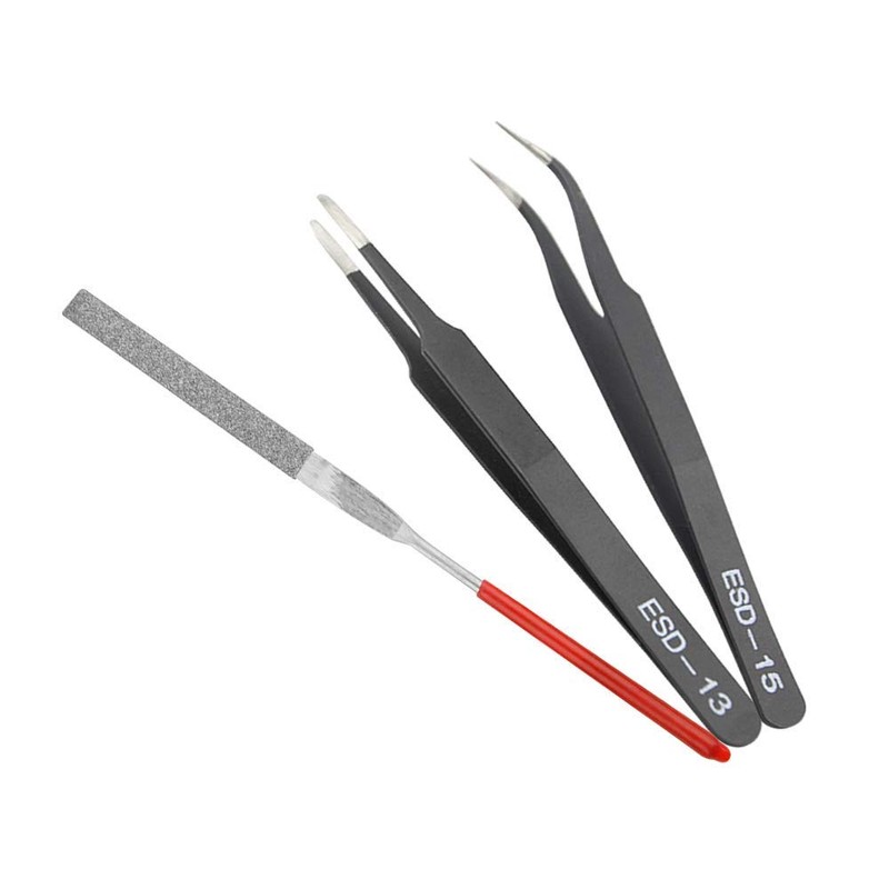 - SUPER CHARACTER: Trimmer pen knife is tightly clamped and has high hardness, plastic handle, and anti-skid design. With safety protection cap to protect blade. The cutting pliers is made of carbon steels, good durability. The tweezers are made of high strength stainless steel, anti-static, anti-acid, anti-corrosion and anti-magnetic. Other items also have good quality.