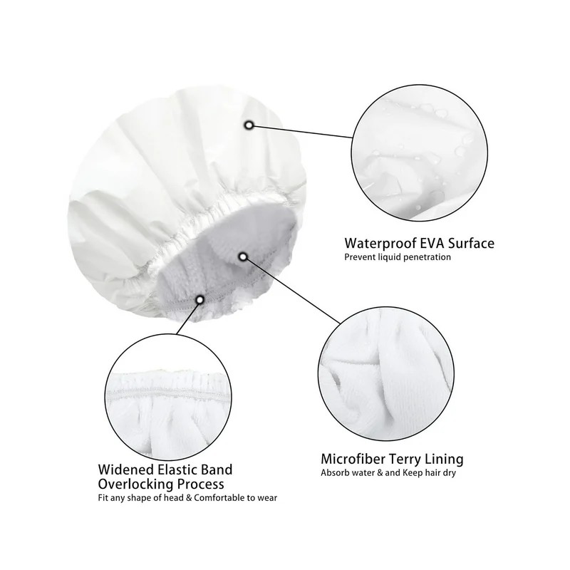 BGZLEU Shower Caps for Women,Bathing Shower Caps,Elastic and Reusable Bath Caps,Double Waterproof Layers Shower Cap,Environmental Protection Hair Bath Hat(White)
