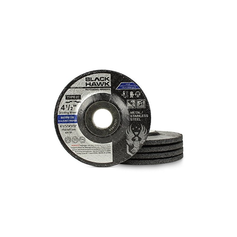 BHA Depressed Center Metal Grinding Wheels for Angle Grinders, 4.5” x 1/4” x 7/8” - 5 Pack