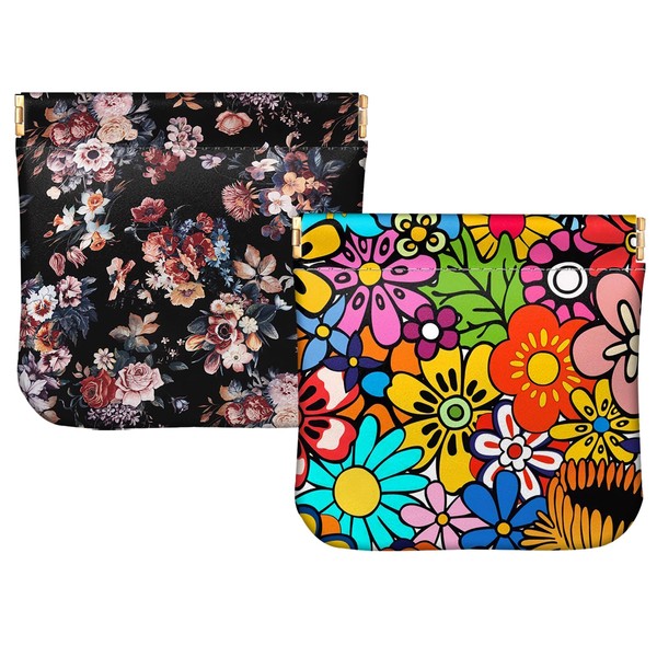 BHAHB 2 PCS Small Squeeze Coin Purse Pouch Soft PU Leather Mini Wallet Change Bag Cute Aesthetic for Women Girls Men (I18-Roses Flowers)