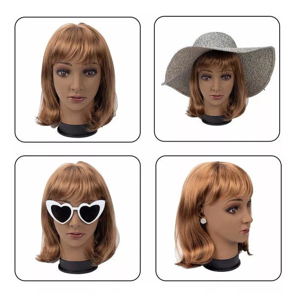 FEATURE: Height-11 inches; Head Circumference-22 inches; Color-Brown.; MATERIAL: Our wig making head is filled with soft pvc and covered with smooth simulative of human skin.; APPLICATION: This is a ideal mannequin for making wig, practicing make up, display wig/sunglasses/hat, etc.; PACKING LIST: 1 pack wig making head 11pcs T pins. Todos nuestros productos estan en inglés SKU 91221051844