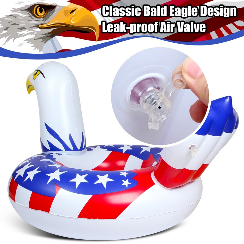 Featuring a classic bald eagle design with a red, white, and blue tail, stars, and stripes, Very suitable for swimming pool parties and spending a happy summer with your friends.
