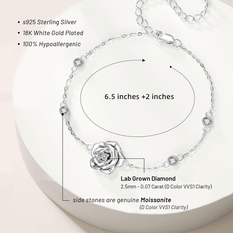 - Material: Bracelets for women with rose pendant measures 13*13mm, Chain Length 6.5"+2"; Crafted of 925 sterling silver and plated 18K gold outer layer, sturdy and shiny