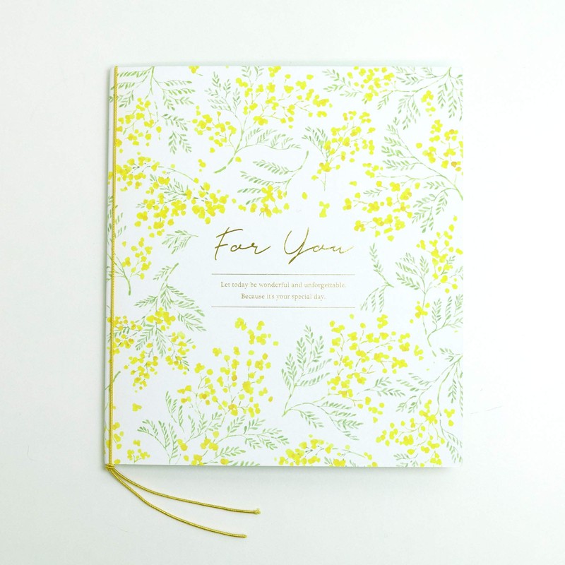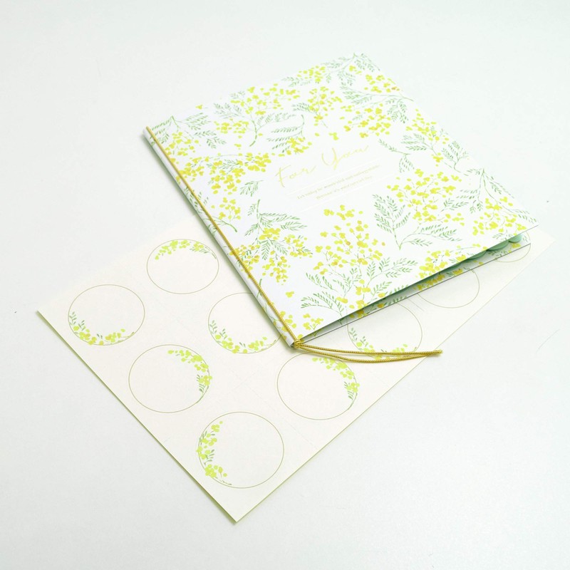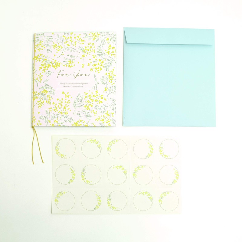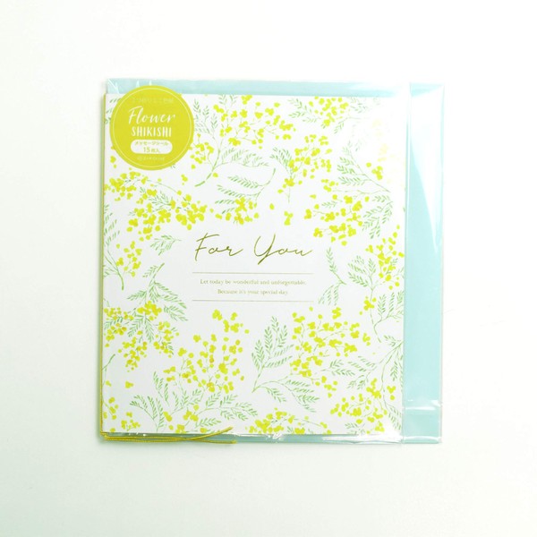 Bi-Fold Mini Shikishi Flower Message Stickers, 15 Pieces, Doodle Writing Mimosa