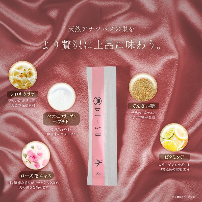 美巣 BI-SU アナツバメの巣 エキス ゼリー | 美容成分 コラーゲン ビタミンc 含 サプリメント 母の日 プレゼント 1箱30本入り (ローズ)