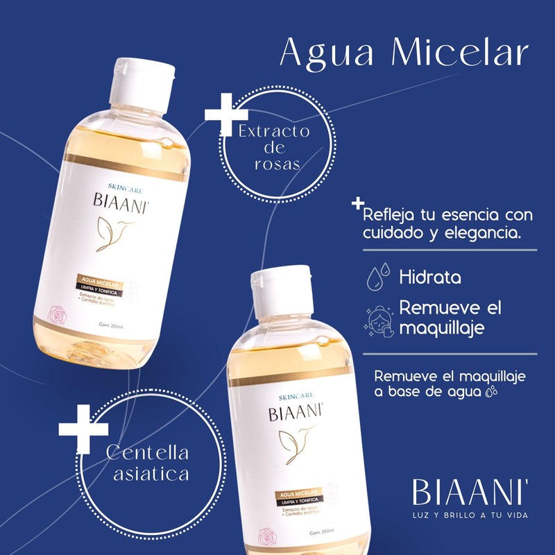 BIAANI' Agua Micelar Desmaquillante con Extracto de Rosas y Centella Asiática 250 ml