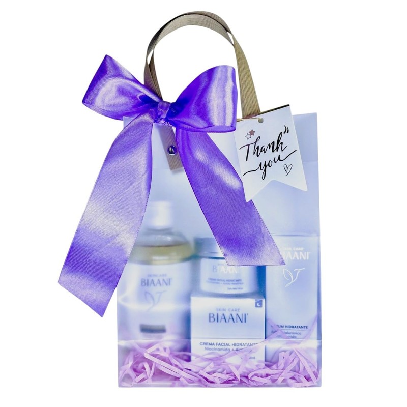 BIAANI' Kit Facial de Cuidado de la Piel, Set de 4 Productos, con Crema Hidratante Nocturna, Crema Hidratante Diurna, Sérum Hidratante y Agua Micelar, en bolsa de regalo