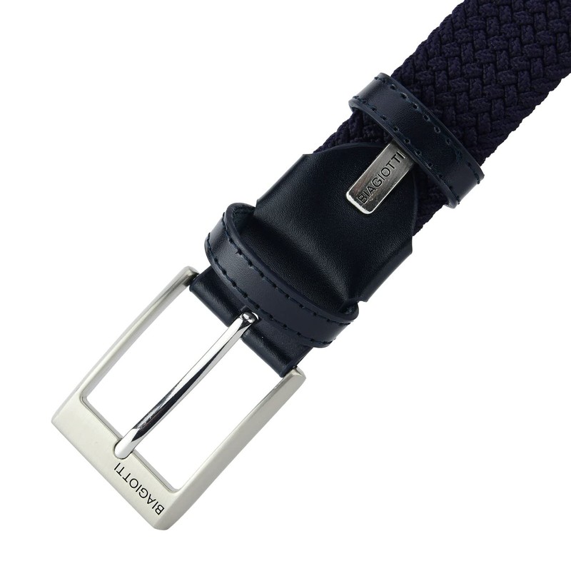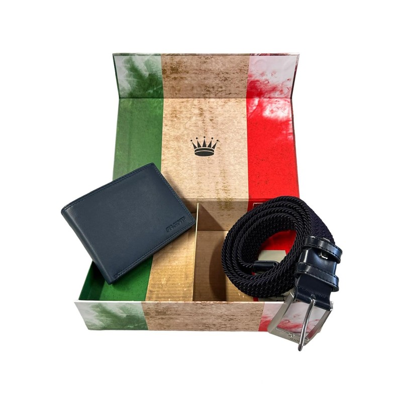 Biagiotti Men's Gift Box Leather Wallet and Elastic Belt with Leather Inserts, blue