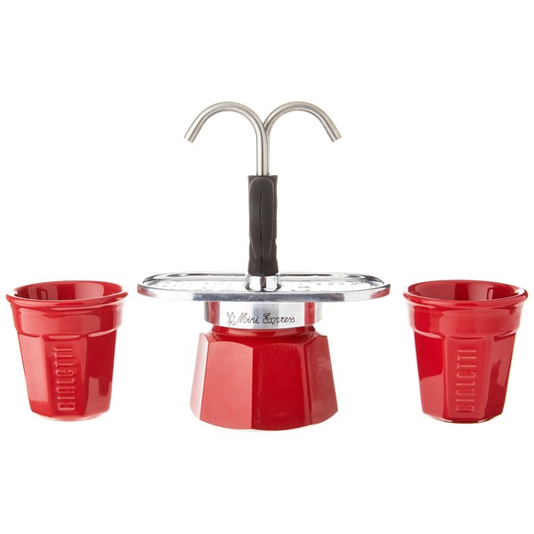 - This unmistakable red Bialetti Mini Express features a support plate and two matching Bialetti-branded espresso cups