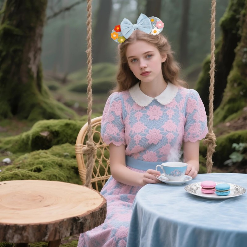 bianbaistar Light Blue Velvet Mouse Ear Headband with Crochet Flower Decorations - A Charming Accessory for Theme Parks and Parties